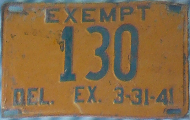 The goal for all bases following this note is to show "EXEMPT" tabs and stickers on the various bases that follow. Not all plate variations will be shown, as the goal is to show the tab/sticker, not the plates themselves. This type is listed under the "Surf & Defunct" category because Exempt was its own plate type until the July 1941 base, at which point "Exempt" because a classification rather than a separate plate type.