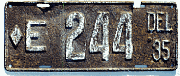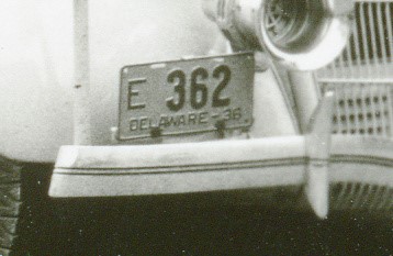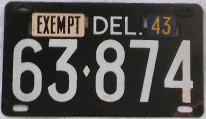 Notes: It is believed that reserved number blocks were no longer used starting with the July 1941 base. Plates exempt from inspection used an "EXEMPT" tab in place of the month-day tab. Two variations: (1) thinner "DELAWARE", straight-leg "R" in "DELAWARE", and (2) thicker "DELAWARE", curved-leg "R" in "DELAWARE".