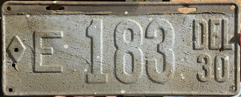 Notes: It is believed that reserved number blocks were no longer used starting with the July 1941 base. Plates exempt from inspection used an "EXEMPT" tab in place of the month-day tab. The state switched to stainless steel plates in early 1947. These plates featured numbers that were spot riveted onto the plate and tab slots to continue using the same style of tab that had been in use up to that point. In late 1950/early 1951, reflective Scotchlite tape was applied to numbers. Number 100000, issued to Governor Bacon, was reached in April 1949. The United States mandated that all license plates measure 6" x 12" starting in 1956.